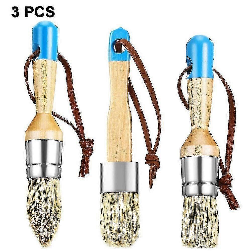 3 Pieces Chalk And Wax Paint Brushes Bristle Stencil Brushes For Wood Furniture Home Decor,round Chalked Paint Brushes