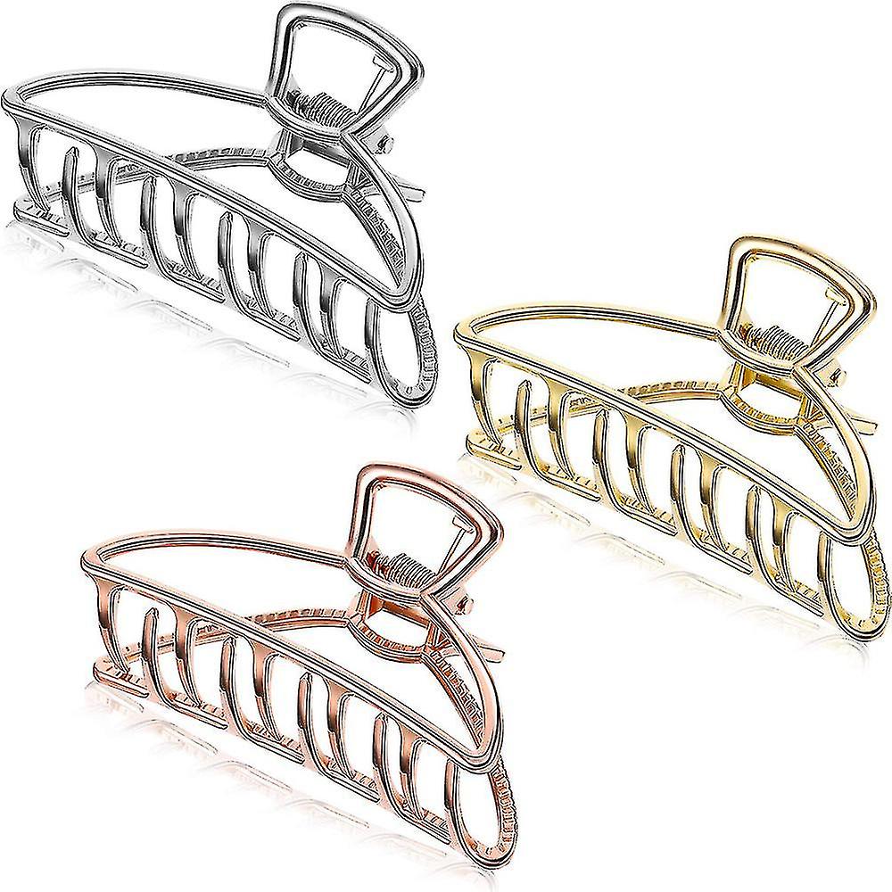 3 Pieces Large Metal Claw Clips Hollow Non-slip Hair Catch Jaw Clamp For Women Girls Hair Barrette For Fixing Hair (3 Pieces, Gold, Silver, Rose Gold)