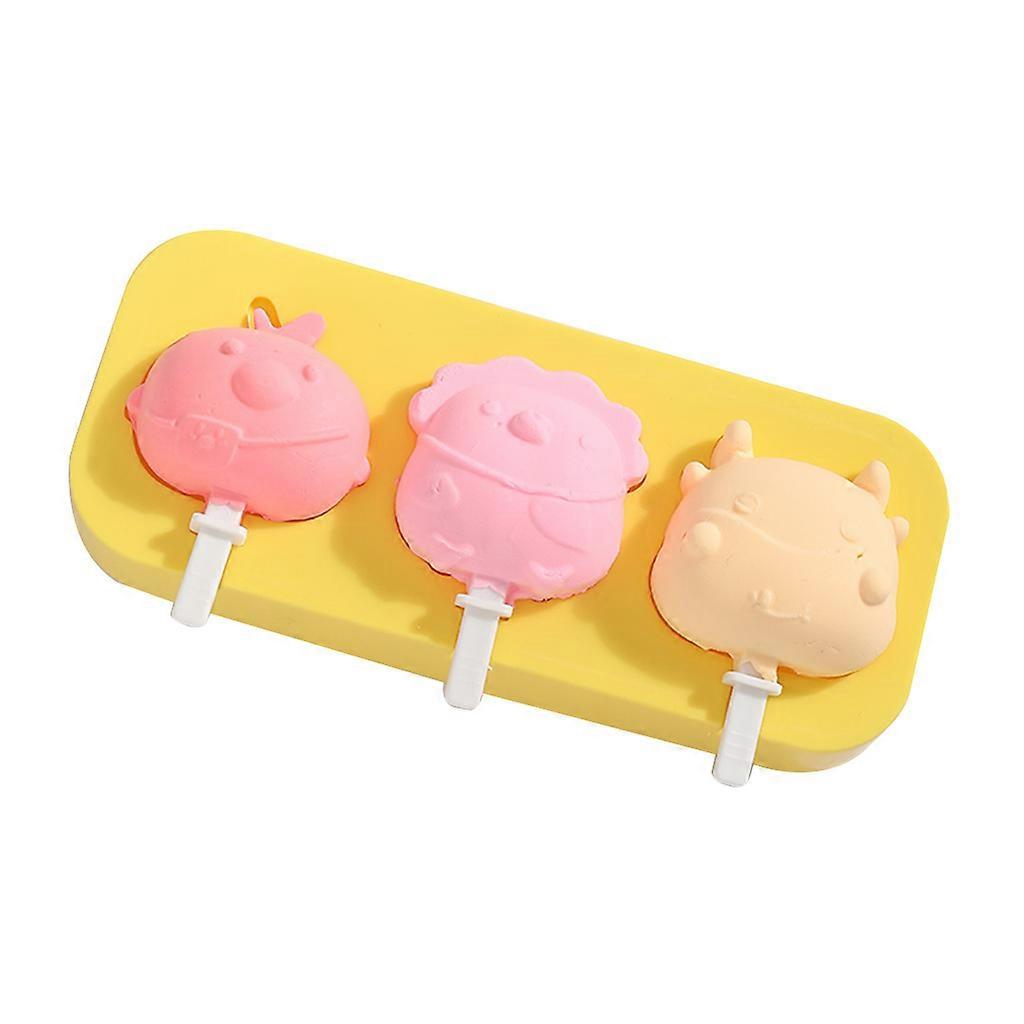 3 Cell Silicone Ice Cream Mold Cartoon Shape Reusable DIY Popsicle Maker Mould