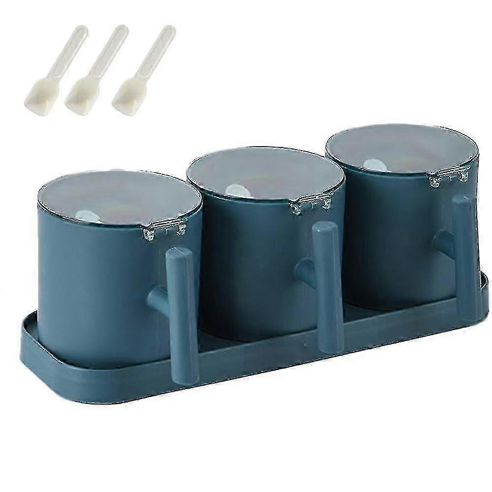 3 Pack Sugar Bowls Set With Spoons And Lids - High Capacity Spices And Seasonings Containers - Glass Spice Jar Seasoning Box For Home Kitchen Coffee B