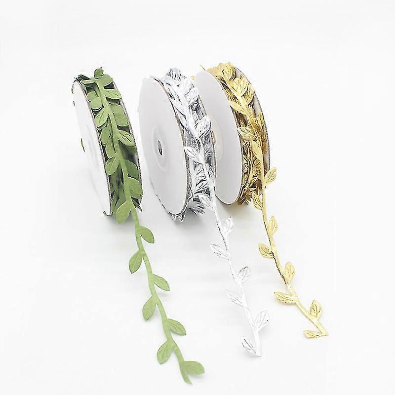 3 Rolls Of 10m Leaf Ribbon, Olive Green Leaf Ribbon