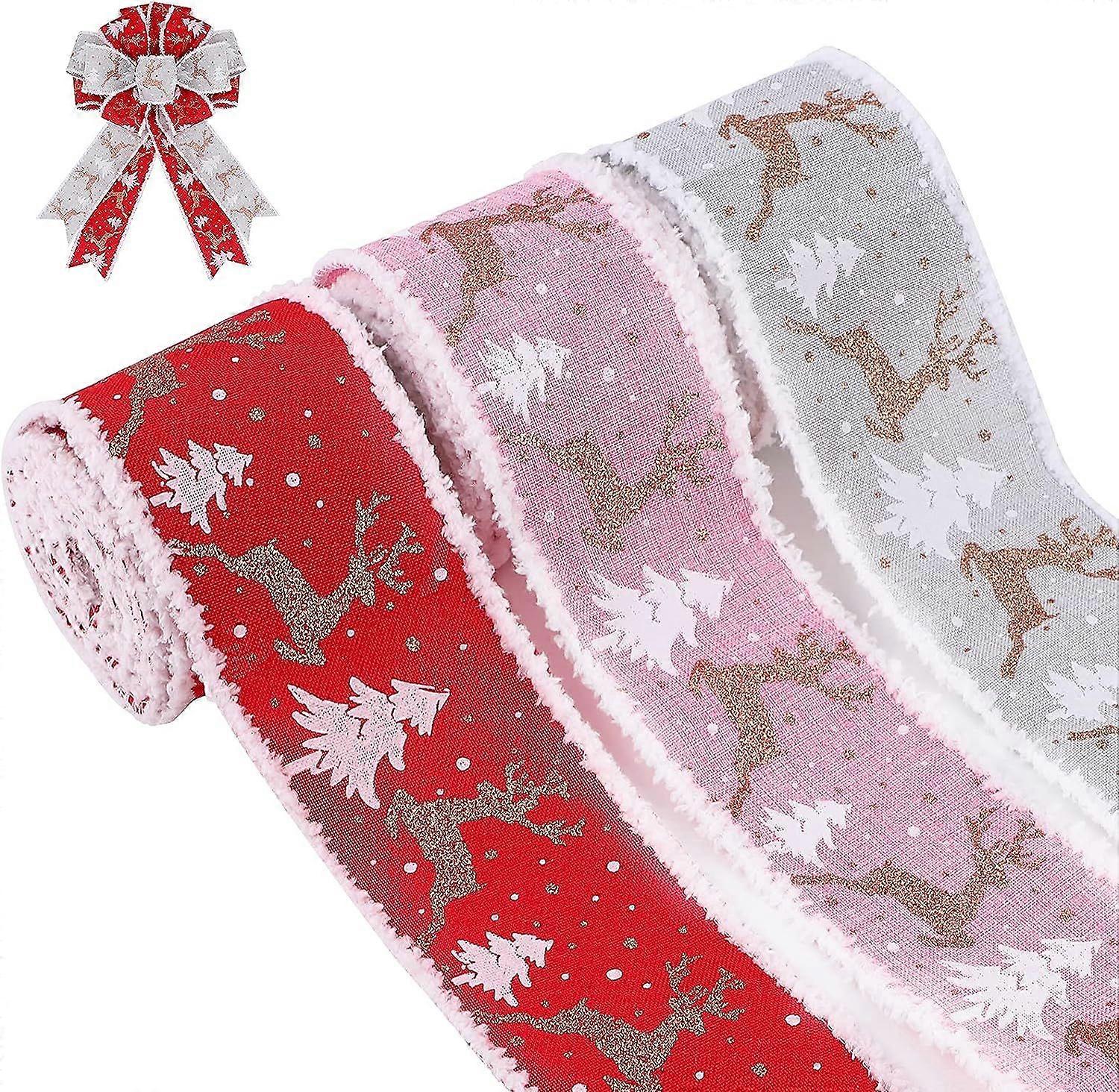 3 Rolls of Christmas Ribbon with Metallic Edges - Christmas Moose Design for Gift Wrapping, DIY, Holiday Wreath, Wedding Decoration - 6.5cm x 5m