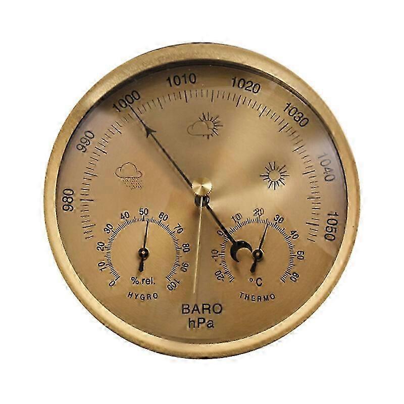 3 in 1 analog weather station in stainless steel 132 mm - Barometer, thermometer, hygrometergold