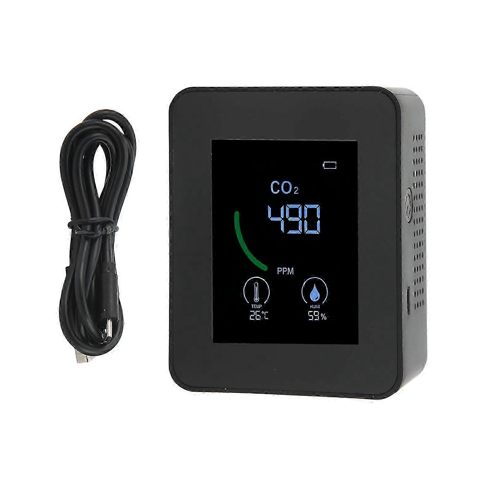 3 in 1 Infrared Carbon Dioxide Detector Temperature and Humidity Tester Anti Interference Air Quality Monitor for Home Office Black