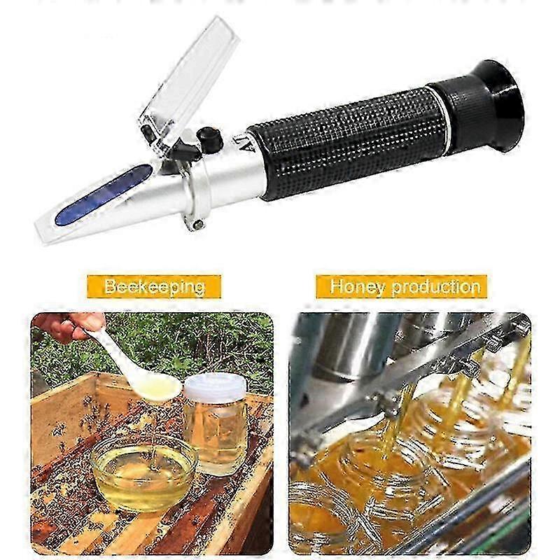 3 in 1 Portable Honey Refractometers for Honey Moisture and Brix and Balsam Beekeeping Honey Refractometer Moisture Content Honey Moisture Tester with ATC <b>Specifications?:</b> Material?: Aluminum Color?: Black Measuring Range?: ?<br / > Water Content?: 12-27%? Brix?: 58-90%? Baume?: 38-43Be' Minimum Division?: 1% Water Content; 0.5% Brix; 0.5 wells Accuracy: 1% Water Content; 0.5% Brix; 0.5Be' Temperature Compensation (ATC) Range? : 10 °C – 30 °C Length: 170 mm / 6.69 in Weight: 250 g / 8.81 oz Package size: 21 x 8 x 5.5 cm / 8.26 x 3.14 x 2.16 in < br/> <b>Packing List?:</b> 1 x Refractometer 1 x Cloth 1 x Case? andlt; br /andgt; 1 x Screwdriver 1 x Pipette 1 x User Manual (English) <br/ >andlt; br /andgt; Note: Due to the light and screen setting difference, the item's color may be slightly different from the pictures. Please allow slight dimension difference due to different manual measurement.