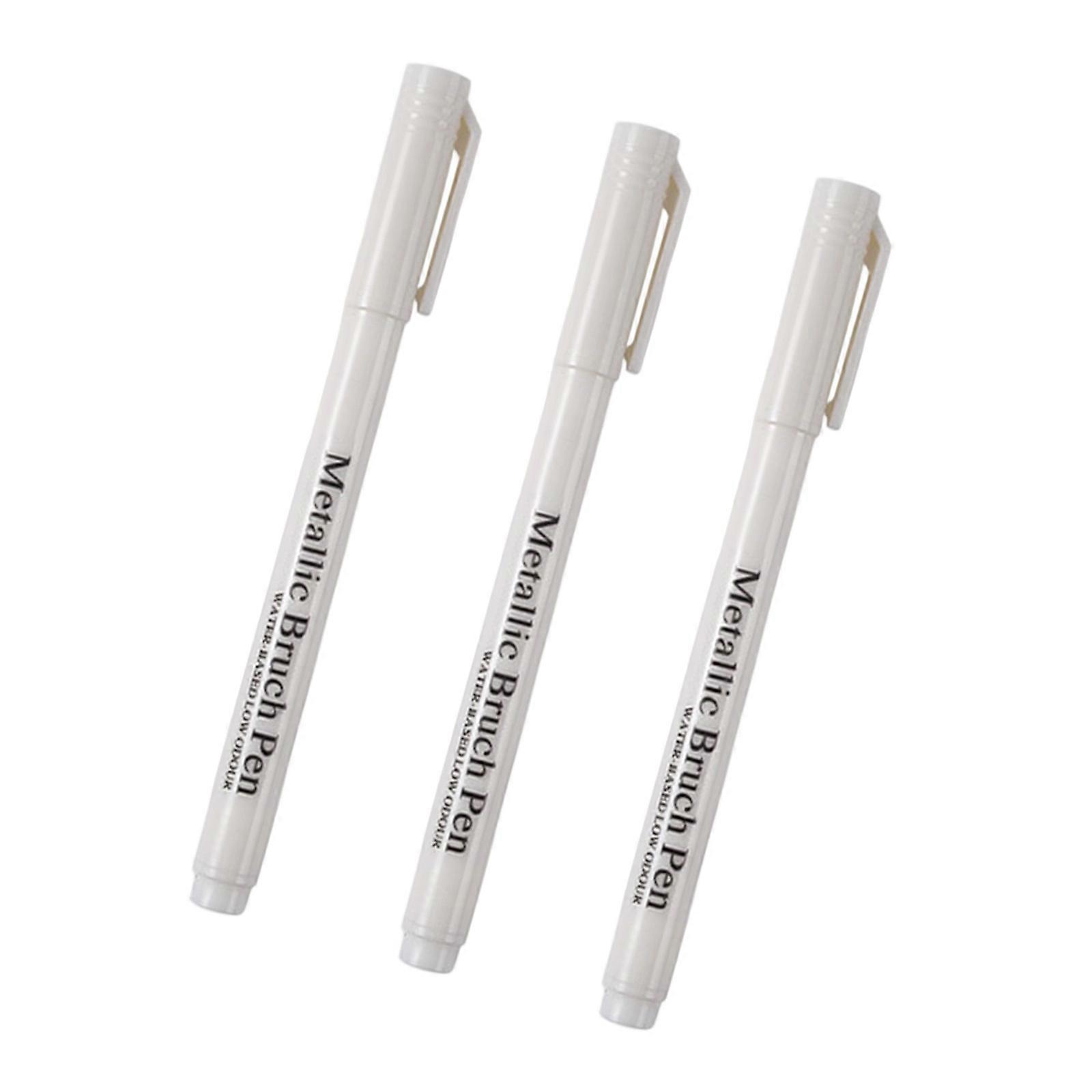 3Pcs Metallic Paint Pen Water Resistant Glittering Highlighter Marker For Card Making Drawing Scrapbooking Craft Project White