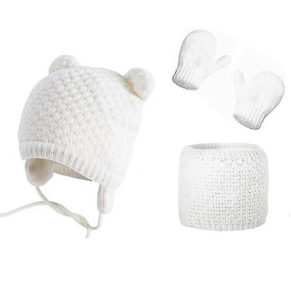 3Pcs Baby Winter Beanie Hat Scarf Gloves Set Knitted Hat Thick Soft Warm Hat for 0-2 Years Old Kids Boys Girls 25-26