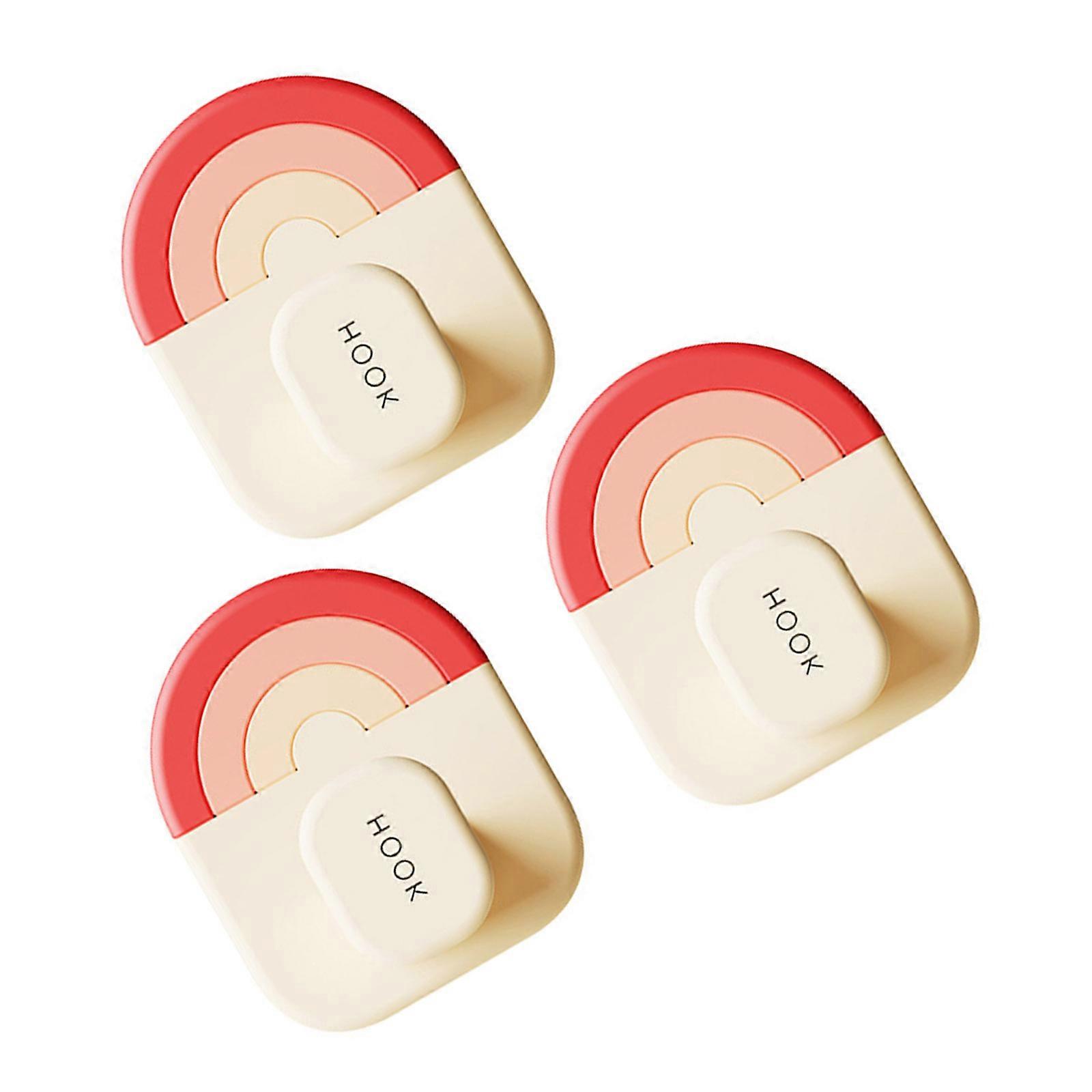 3Pcs Bright Removable Hooks for Organizing Keys Jewelry Bath Towels Decorative Wall Mount Bathroom Hangers Red