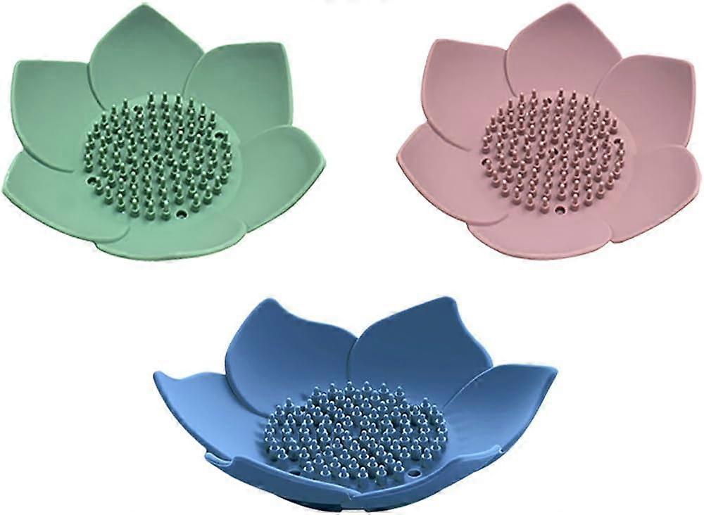 3 pcs Soap Dishes with Draining, Lotus Flowers Soap Dish, Non-Slip Flexible Soap Tray for Bathroom Shower, Soap Dish Home Shower,2024 Ping