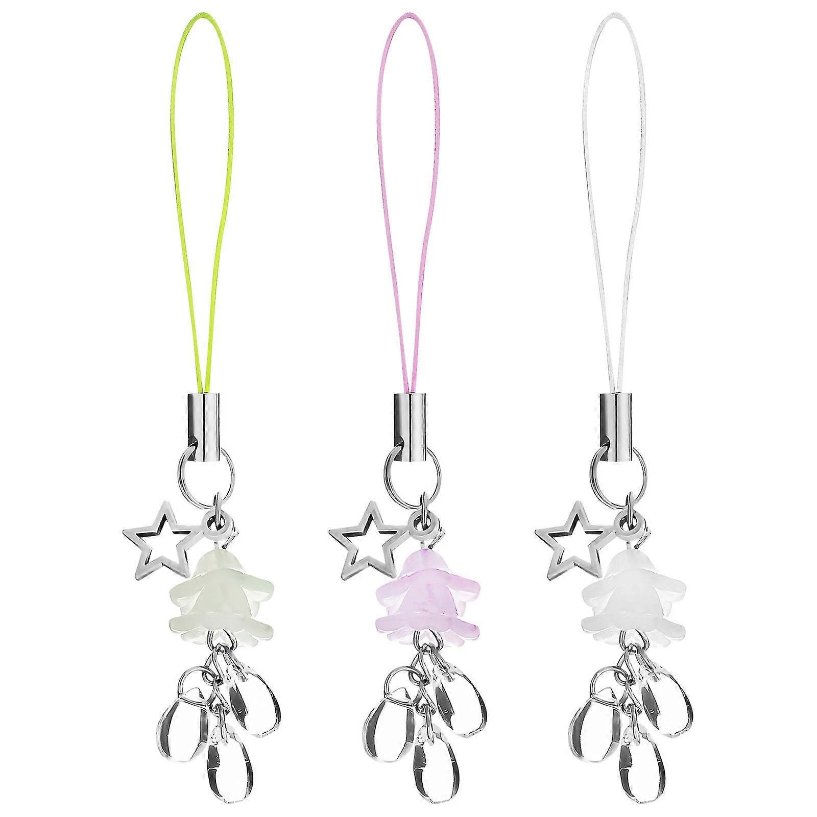 3pcs Cute Phone Charms For Girls - Shiny Bracelet Pendant Aesthetic Flower String - Cute Anti-Lost Keychain Phone Chain Bag Chain For Womens Girls