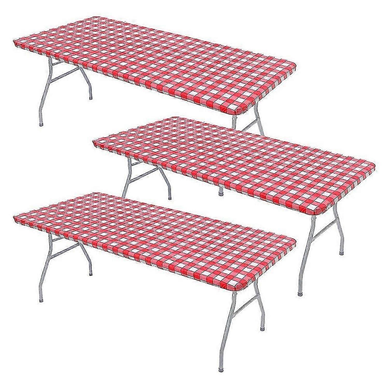 3 Pcs Fitted Tablecloth for Table,Stretch Waterproof Elastic Vinyl Picnic Table Cover with Flannel Backed Lining(Red)