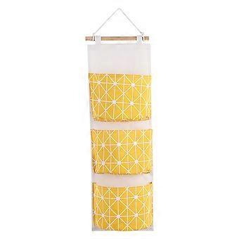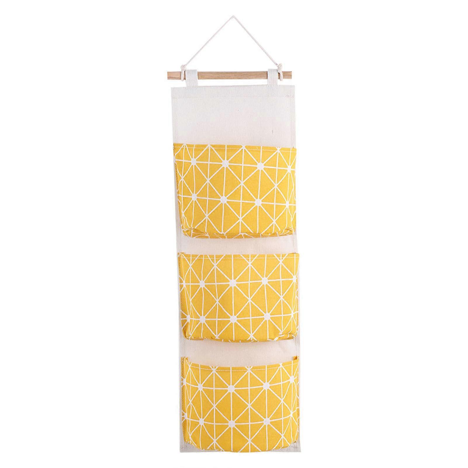 3 Pockets Cotton Linen Wall Hanging Storage Bag Door Pouch Bedroom Home Office Organizer Yellow