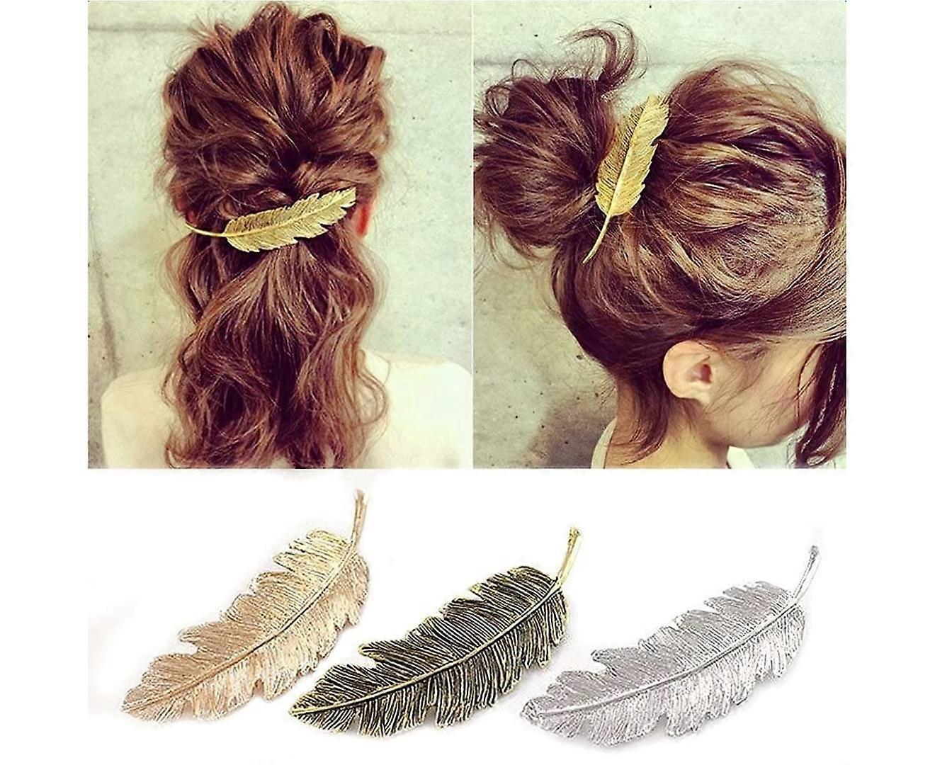 3 Colors Metal Feather Leaf Hair Clip Vintage Leaf Hair Clip Hair Accessories Headgear Feather Leaf Hair Clip