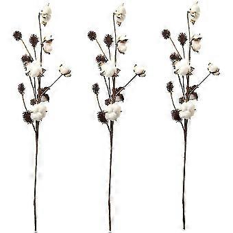 3 X Cotton Stems, Farmhouse Decoration, Flowers, Rustic Style Vase Filler, Rustic Cotton Branches, 68 Cm Per Stem, Flower Decoration