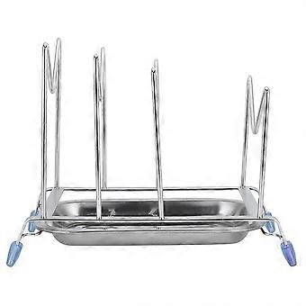 3‑Grid Cutting Board Plate Storage Rack Pot Lid Stand with Water Pan Kitchen Accessory