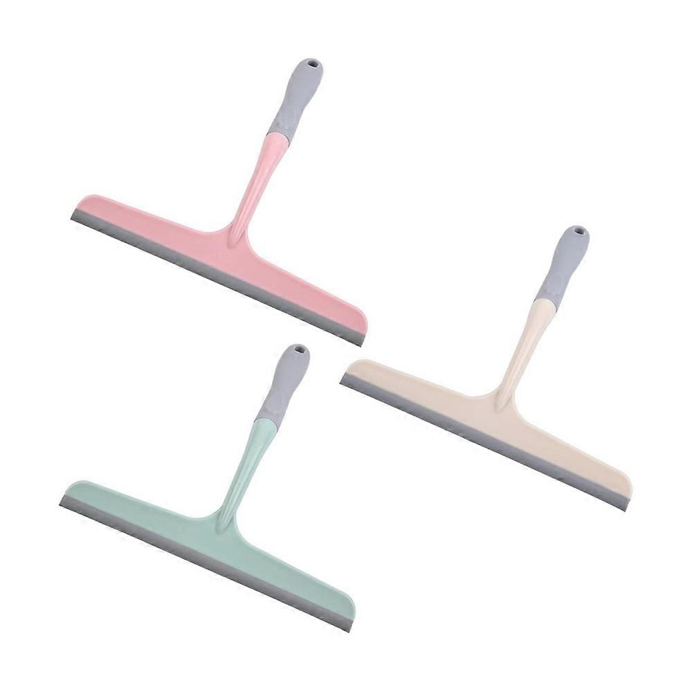 3-Pack of Rubber Mini Squeegees with Plastic Handle - for Shower, Window and Car Glass - Green, Beige, Pink