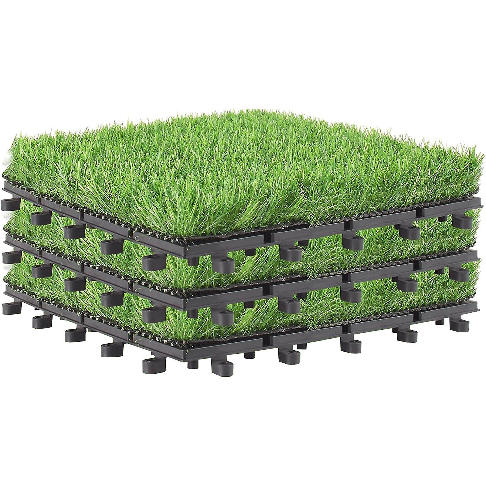 3 Pcs Garden Artificial Grass Tiles Realistic Appearance Soft Touch Fake Grass For Outdoor Garden Yard Porch