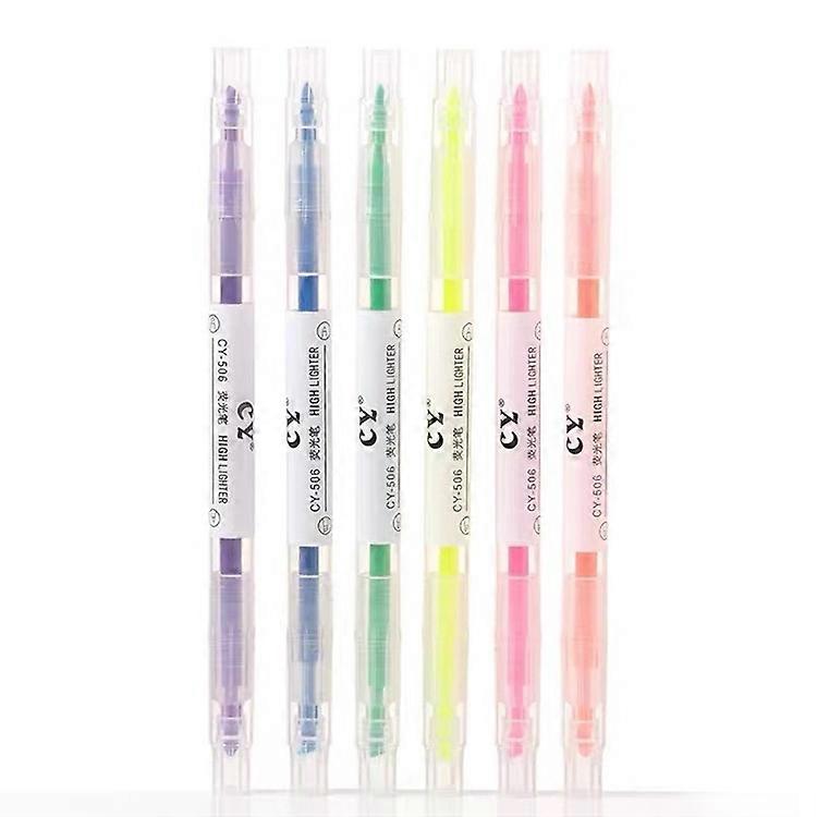 3 PCS Double-headed Color Fluorescent Marker Pen Account Book Graffiti Coloring Pen(6 Colors 6 Pcs)