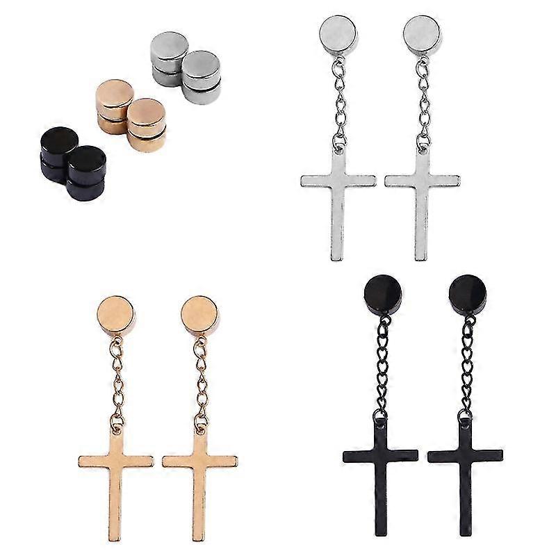 Features: Package included:you will get 3pairs magnetic earrings,satisfy you different everyday dress up demands. Different earrings have different glamour. Durable material: made of stainless steel, nickel-free and lead-free. The surface is polished with excellent texture that makes earrings look very shinny and smooth. Unisex design:the non pierced earring is simply designed,fake piercing convenient to wear,a variety of colors are provided,suitable for both men and women to wear,fashion and exquisite,win more compliments. Beautiful, fashionable and retro. Wide application: you can wear them to attend many kinds of occasions, such as daily wearing, wedding, holiday, date, prom, beach party and more. Ideal gift: these cross earrings can be a sweet gift for your family and friends on anniversary, birthday, ceremony, Christmas, Mother's day, Valentines' day, Thanksgiving day etc. Package Includes: 6 Pieces/set Ear Clip Specifications: Material: Stainless Steel Cross Earrings Total Length: Approx.5cm/1.97inch Circle Diameter: Approx. 8mm/3.14inch Cross: Approx. 2.5x1.6cm/0.98x0.63inch note: Please allow 1-2cm errors due to manual measurement,pls make sure that you do not mind before you order. Due to the difference between different monitors, the picture may not reflect the actual color of the item.