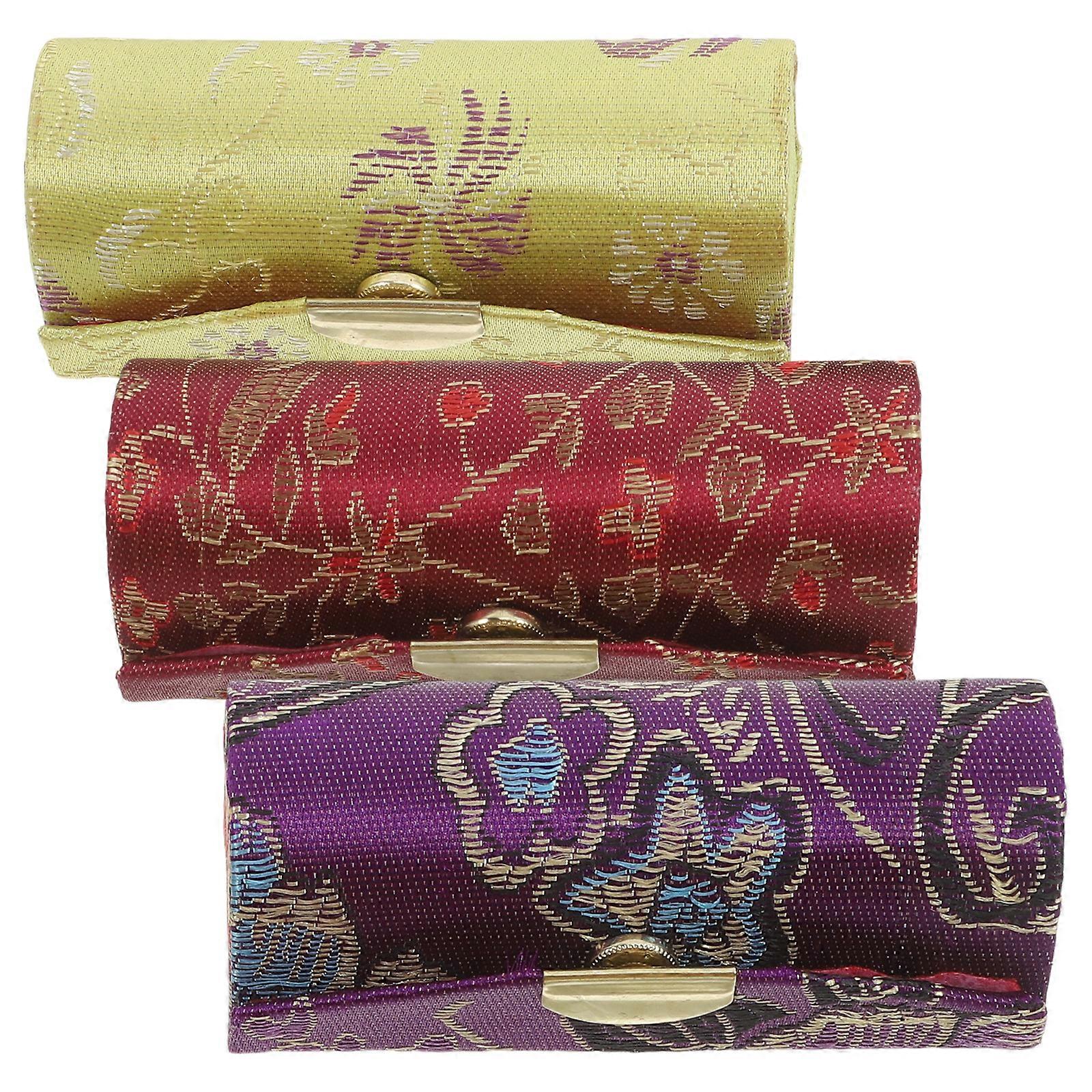3 Pcs Lipstick Box Chinese Style Woven Cotton Pattern Lip Balm Organizer Bag Desktop Jewelry Storage Container Durable Cosmetic Storage Case