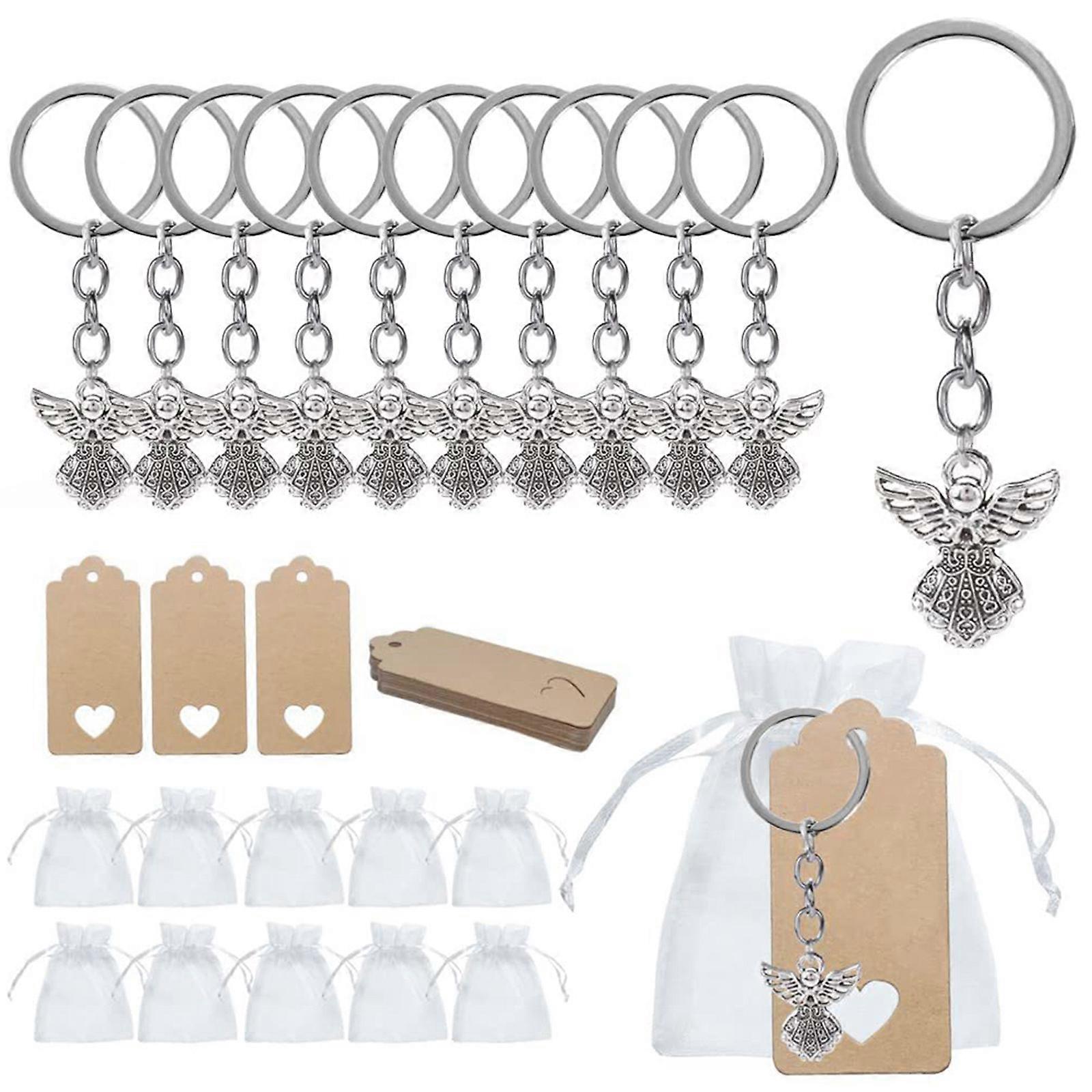 30Pieces Angel Keychain Favor Angel Pendant Keychain Christening Gift Keyring with Thank You Kraft Pendant Bag for Kids
