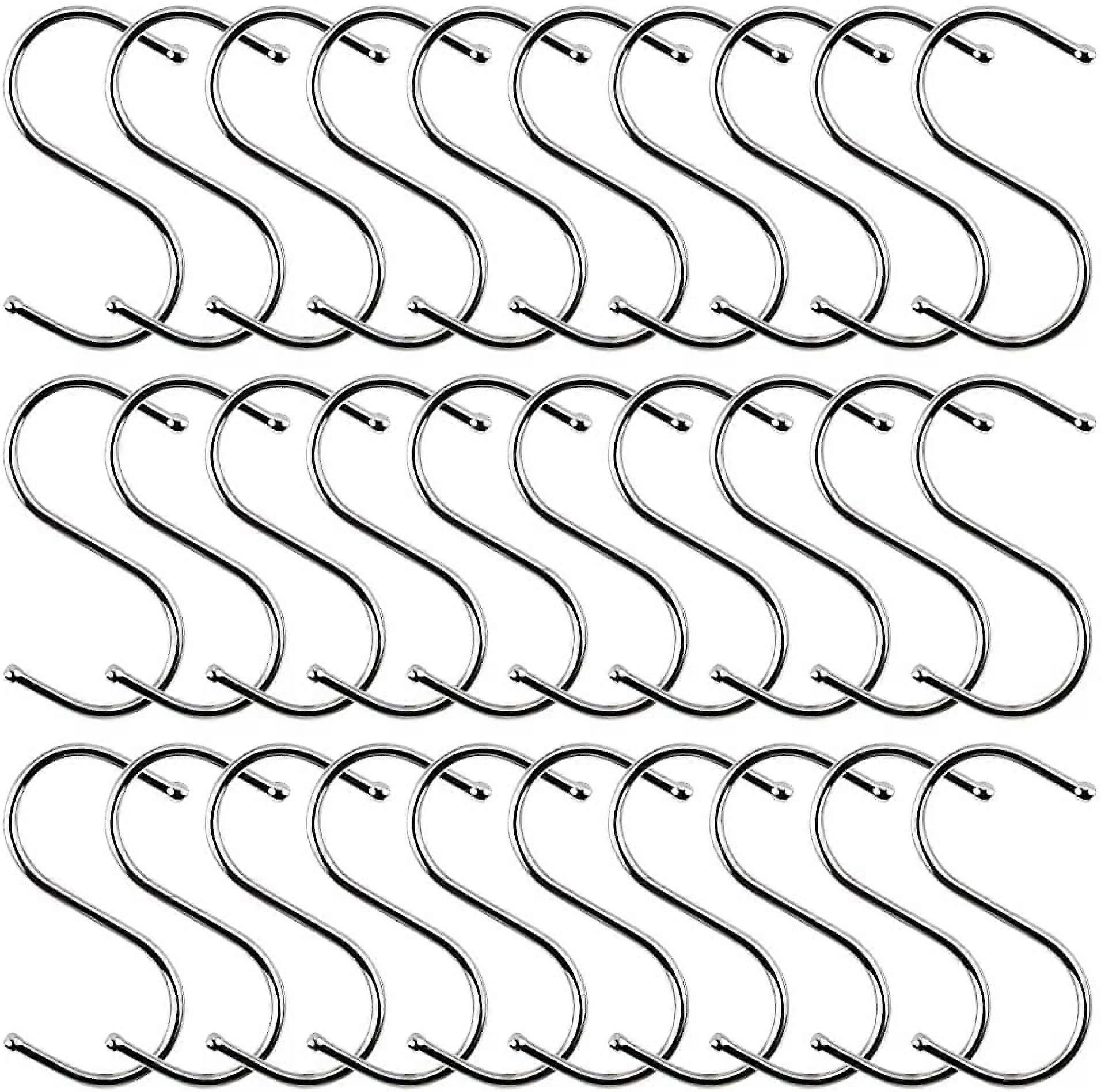 30 Pack 3 Inch Metal S Shaped Hanging Hooks,Heavy Duty S Hooks for Hanging Pots Pans