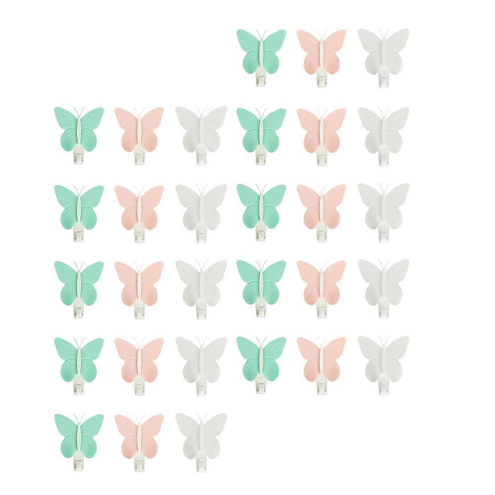 30Pcs Assorted Color Wall Hangers Strong Sticky Butterfly Shape Hooks for Kitchen Bathroom Bedroom Living Room Use