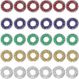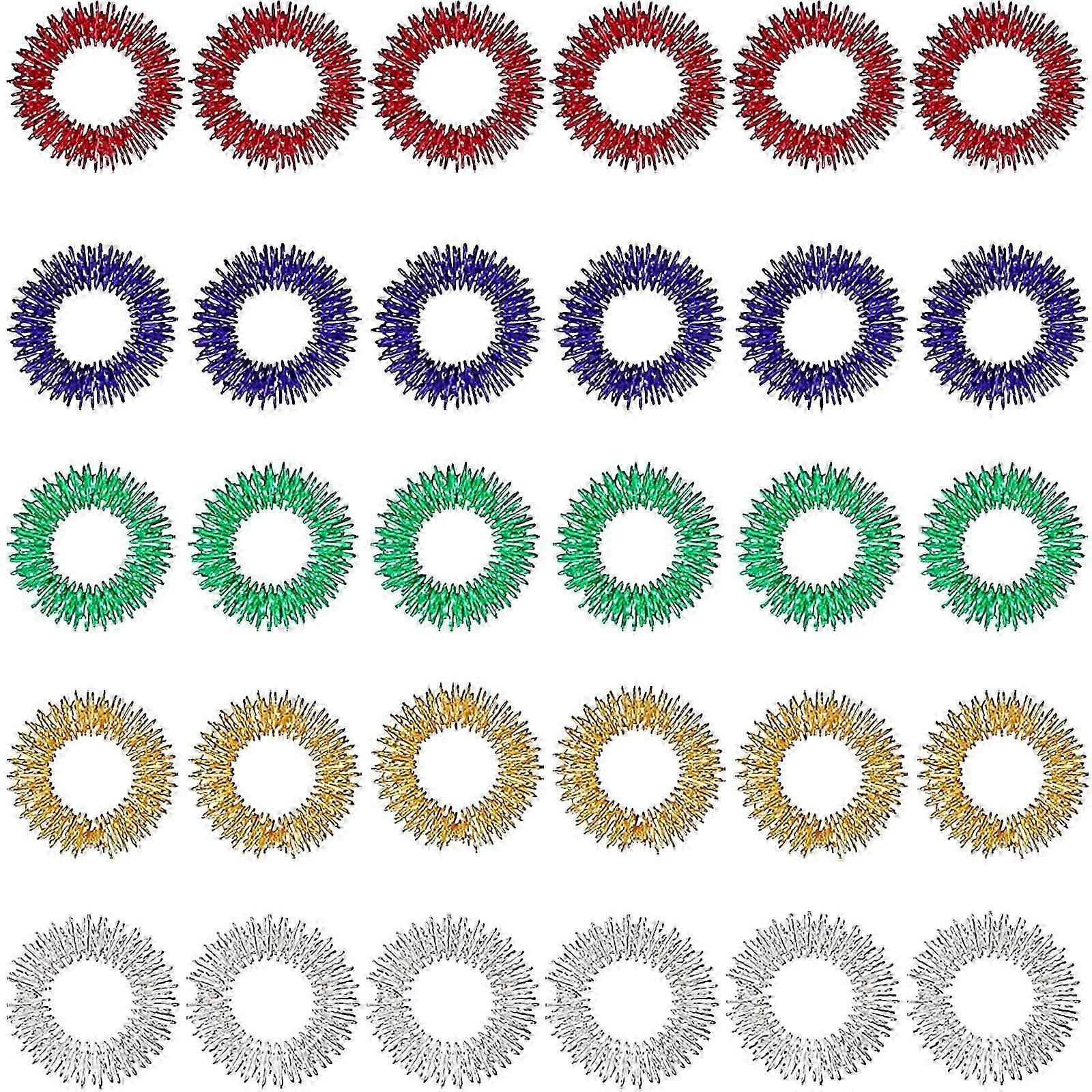 30 Pcs Acupressure Rings, Spiky Sensory Finger Rings Set for Teens, Adults, Silent Stress Reducer and Massager