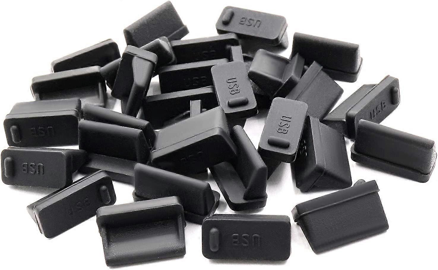 30 Pcs Silicone USB Cap Port Cover Anti Dust Protector for Female End Black