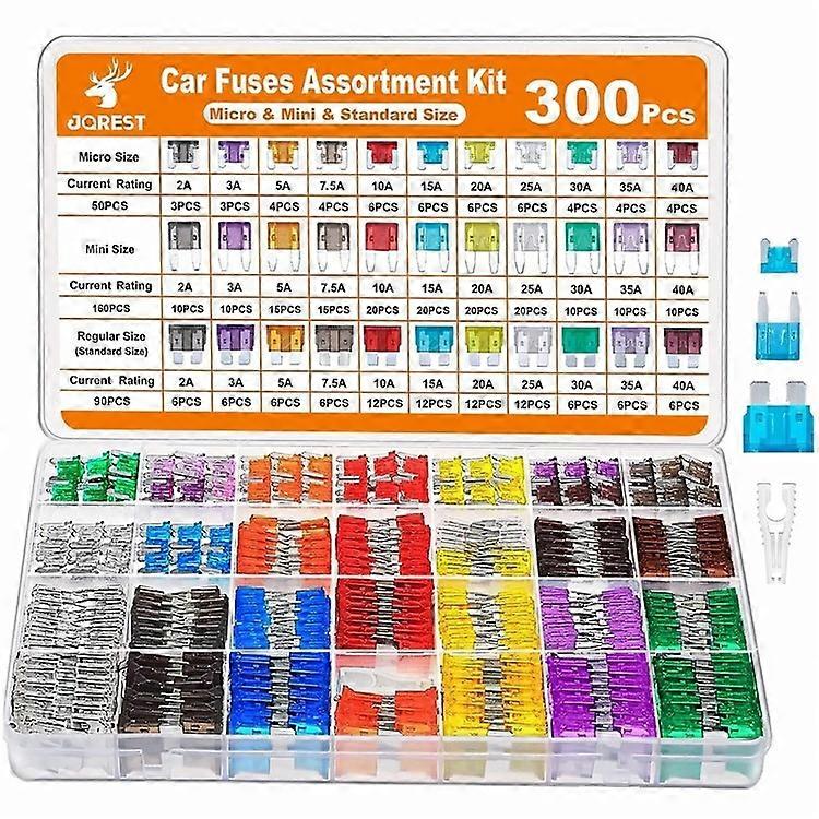 300Pcs Car Truck Fuse Assortment Kit (90 Standard+160 Mini+50 Micro Fuses)