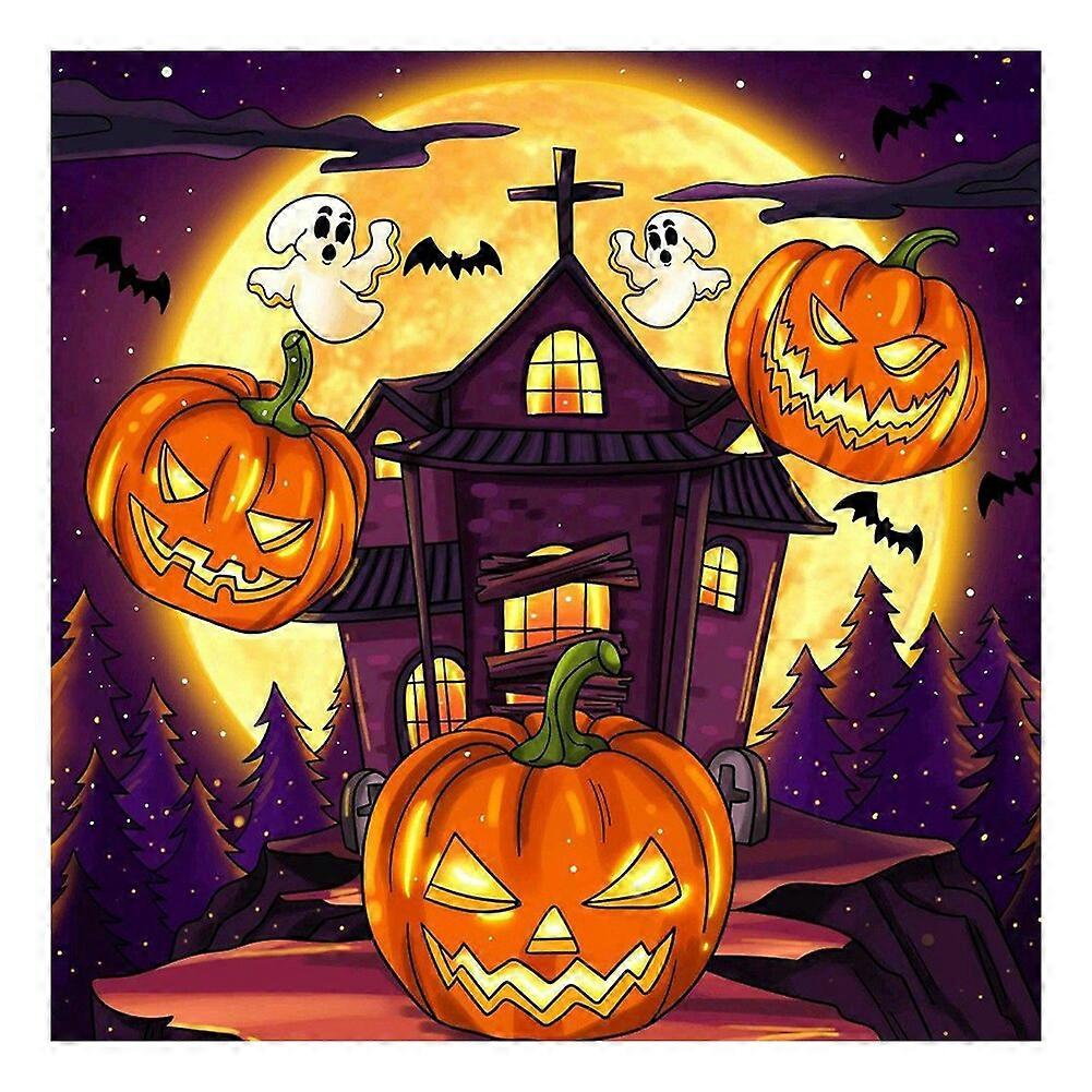 30*30CM DIY 5D Mosaic Full Drill Round Shape Diamond Halloween Pumpkin Resin Painting Kit Rhinestone Drawing Home Decor Art