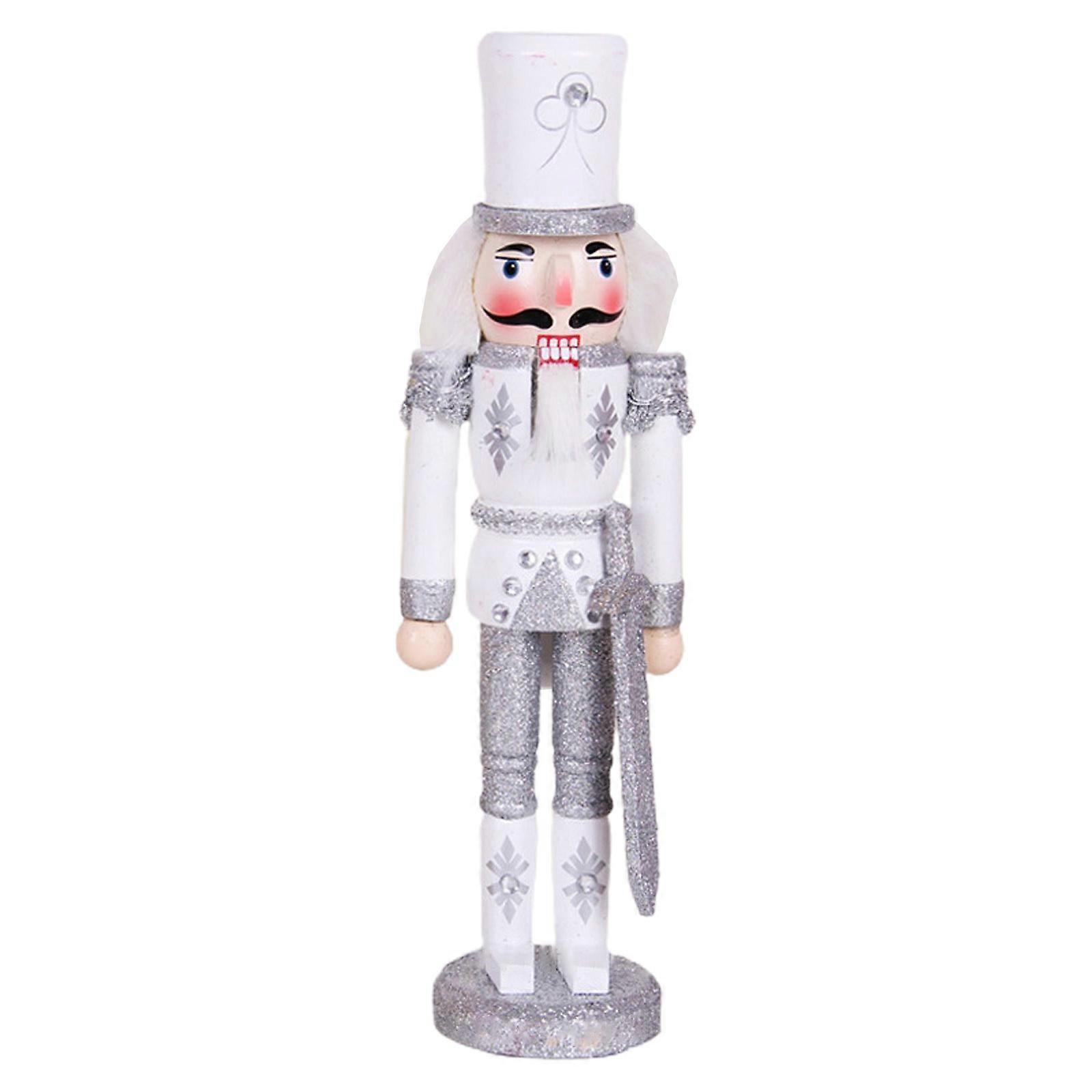 30cm Nutcracker Soldier Figure Wooden Glitter Snowflake Nutcracker Figurine Toy Christmas Decor for Shelves Tables Home Silver