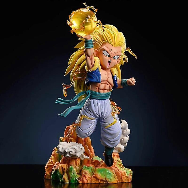 30cm Anime Super 3 Gotenks Dragon Ball Action Figures SJJ3 Gotenks Yellow Hair Figurine Luminescence PVC Model Ornamen Toys