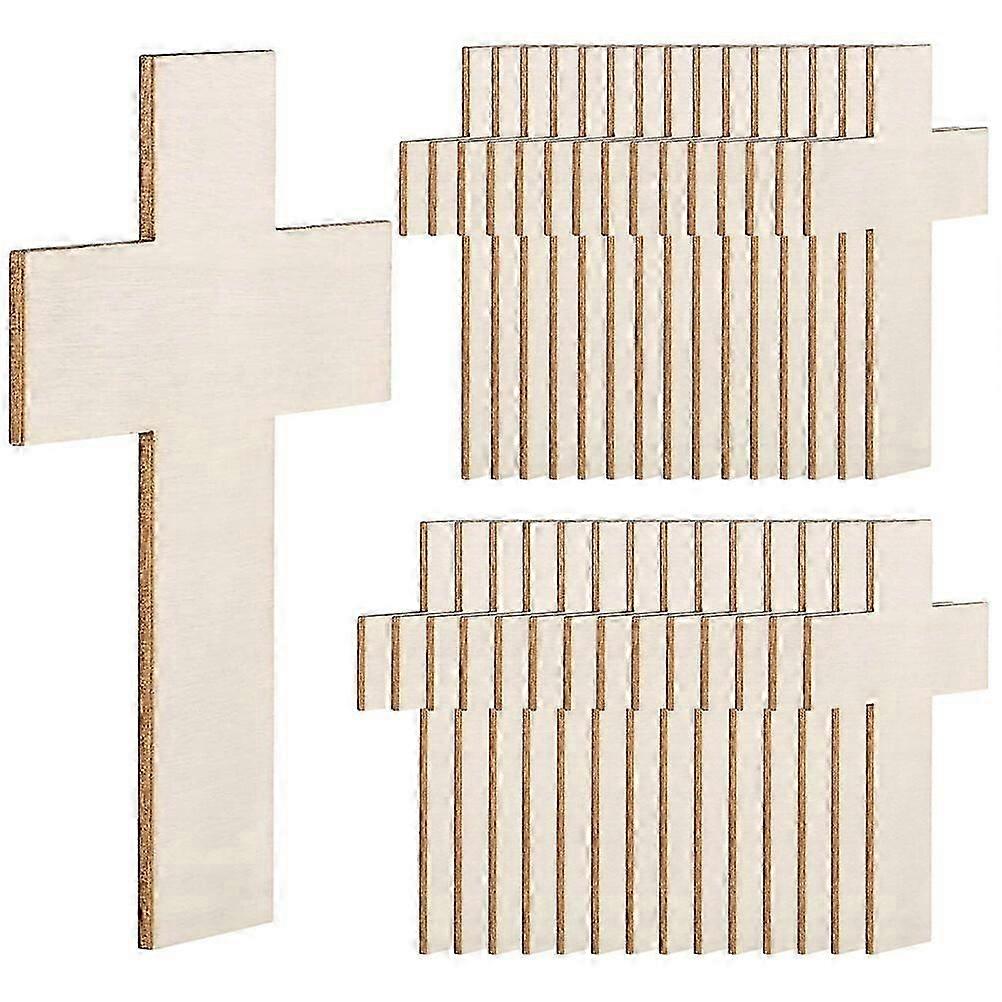 30pcs Cross Shape Wooden Chips Wood Slices Easter Wooden Cutouts Home Decor