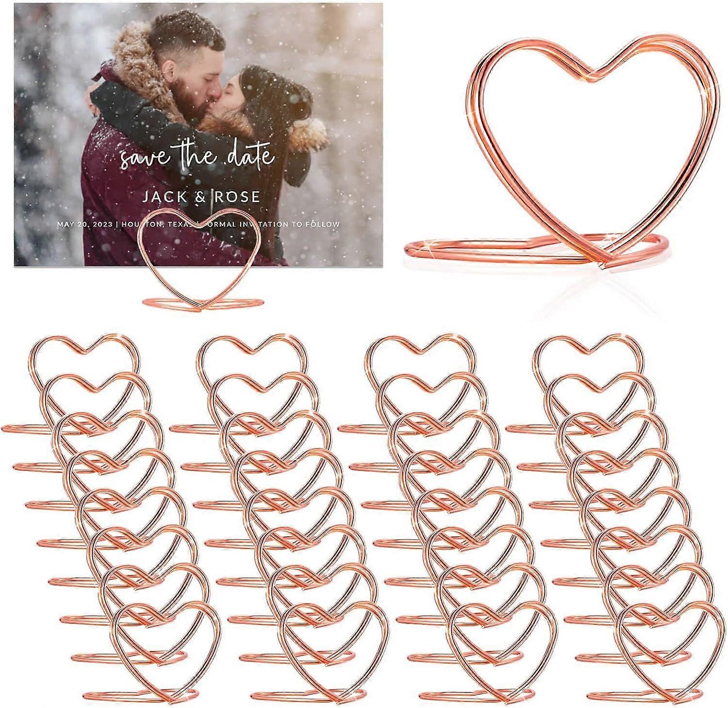 30x26mm Gold Table Number Place Card Holders - 32 Pcs Heart Shape Photo & Business Card Stand for Wedding Party