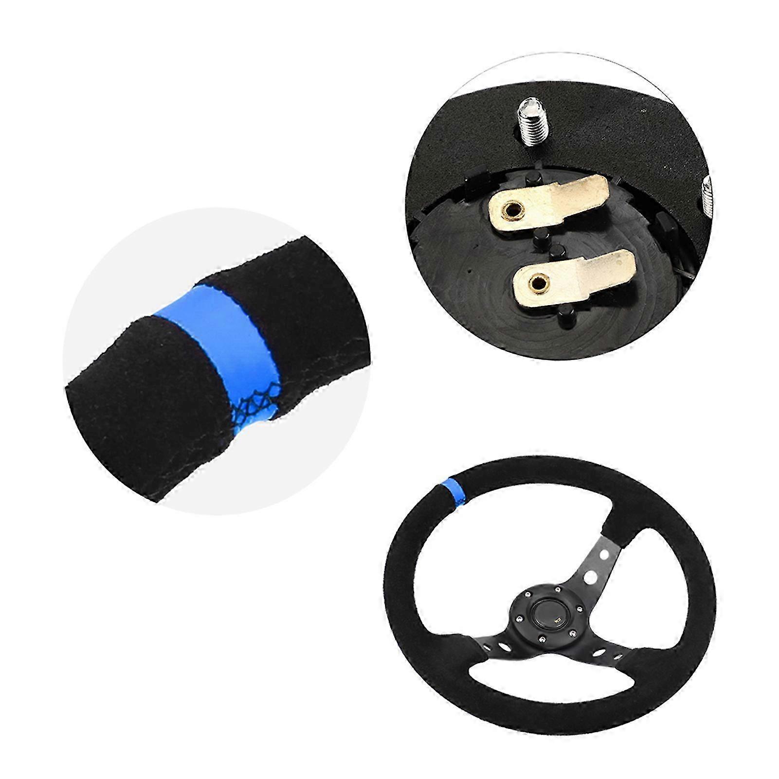 Description: This is a high quality steering wheel made of aluminum frame and wrapped with napped leather. Comes with horn button. Reasonable size and design inspired from the concept of human mechanics. Comfortable touch and attractive look, it's really a great modification part for your original vehicles! Features: High quality aftermarket steering wheel with horn button. Compatible with most standard hub adapter, universal for most vehicle, racing car. Aluminum steering wheel frame and wrapped with napped leather, comfortable and durable. Fashionable and exquisite design, can enhances the appearance of your car's interior. Comes with mounting screws and wrench, easy installation without modification. Specifications: Material: Napped Leather + Aluminum Color: Blue Diameter: 35cm/14in Package Weight: approx.1190g Fitment: Universal Package Included: 1 x Steering Wheel 2 x Cable 1 x Hexagonal Screwdriver 6 x Screw Notes: 1. Ensure that all six retaining bolts are securely tightened before the operation of the vehicles. 2. Please ensure that the connection of the horn is made prior to the bolts being tightened. 3. Please note that the new type and old type of this product will be sent randomly, and make sure you will not mind before ordering. 1High quality aftermarket steering wheel with horn button 2Compatible with most standard hub adapter, universal for most vehicle, racing car 3Aluminum steering wheel frame and wrapped with napped leather, comfortable and durable 4Fashionable and exquisite design, can enhances the appearance of your car's interior 5Comes with mounting screws and wrench, easy installation without modification
