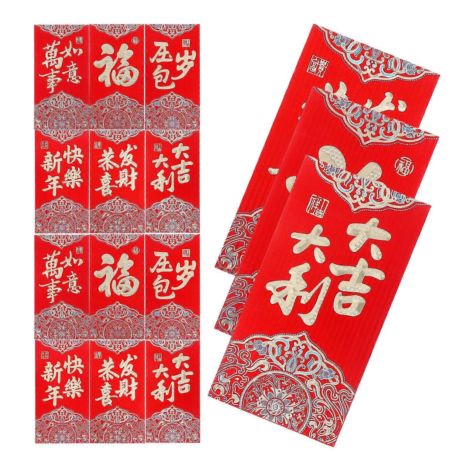 36pcs Chinese Red Envelopes with Auspicious Embossed Designs for Money Gifts, Wedding & Spring Festival Blessings, Traditional Style Packets