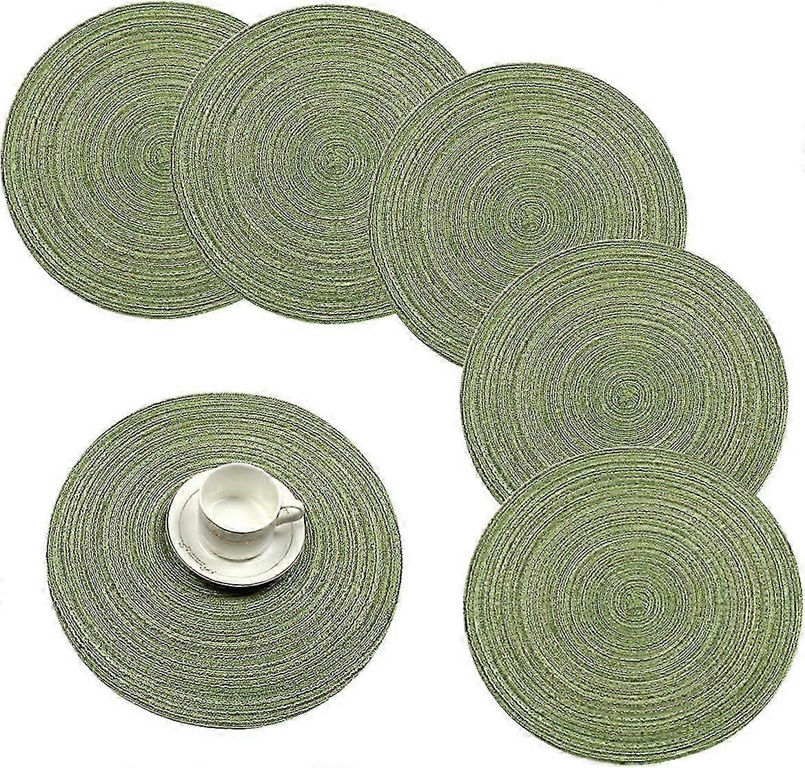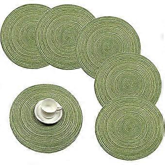 38cm Woven Round Heat Insulated Non-Slip Cotton Placemats (Green, 6-Pack)