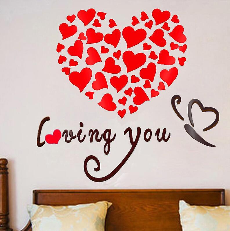 3D Mirror Lovely Heart Wall Sticker Decal DIY Home Mural Living Room House Decor