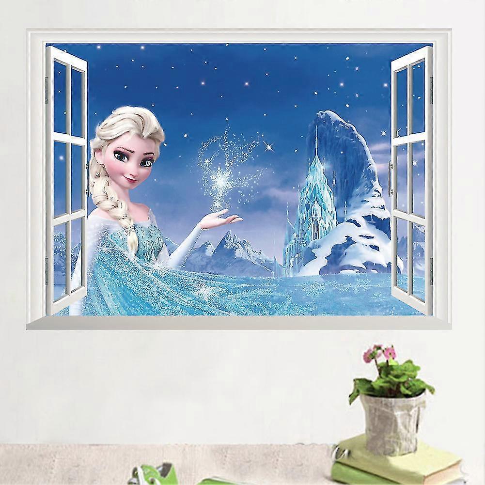 3d Frozen Princess Elsa Fake Window Wall Sticker Kids Room Decor Wallpaper,2024 Ping