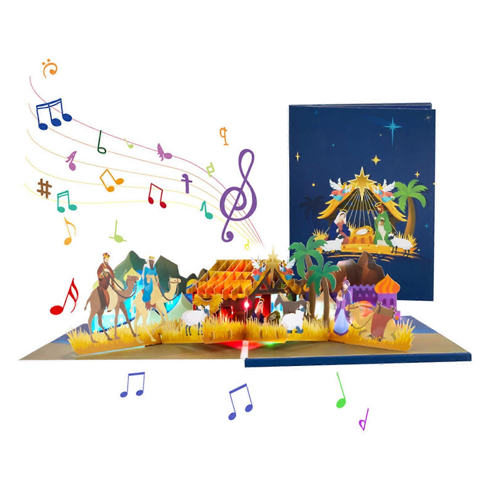3D Christmas Light Up Music Card Unique Foldable Greetings Card with Envelope Present Card for Family and Friend