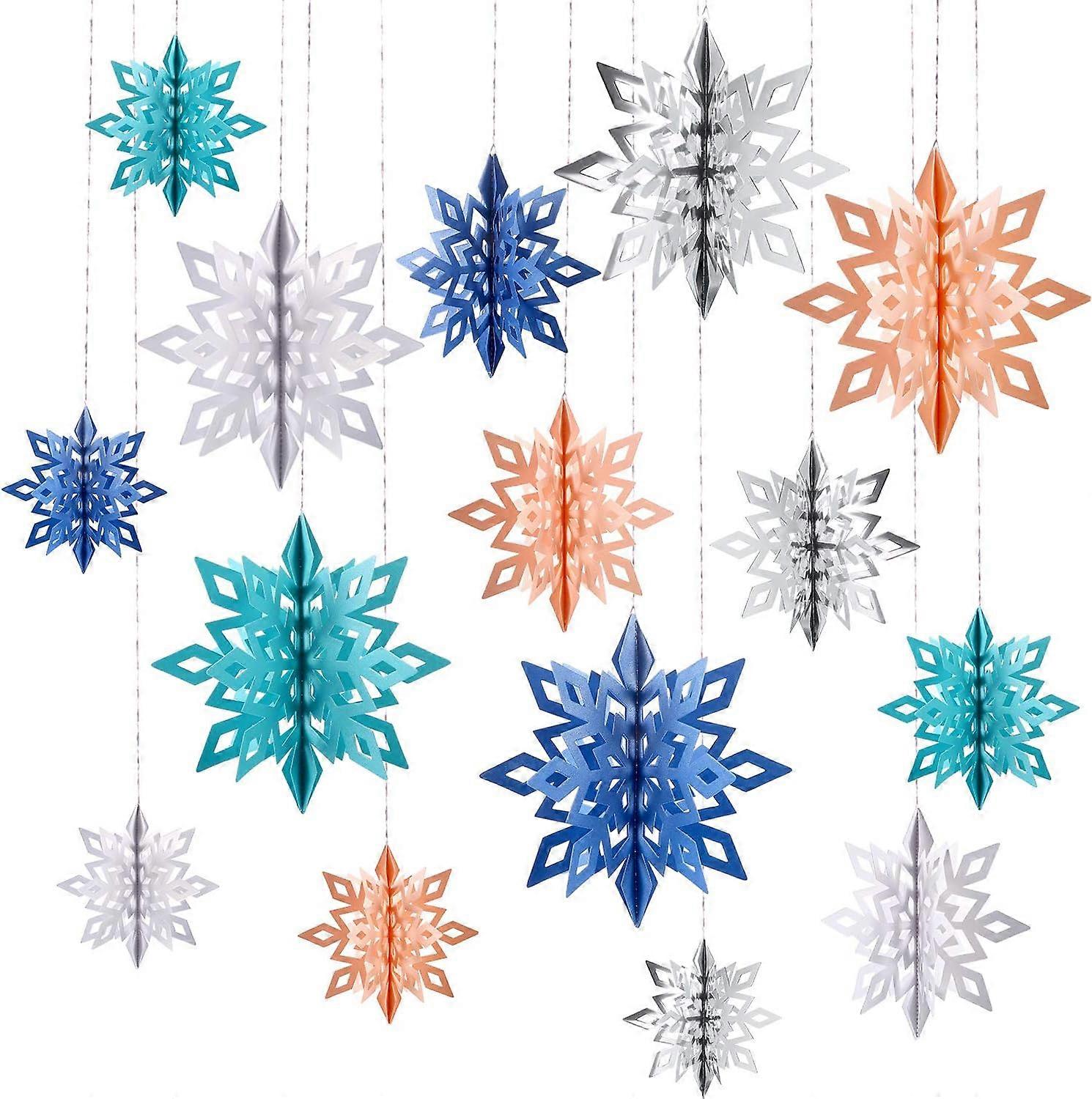 3D Hollow Christmas Winter Hanging Snowflakes Ornaments Decorations Glittery Large Snowflake Pendant Garlands for Winter Wonderland Party Home Decorat
