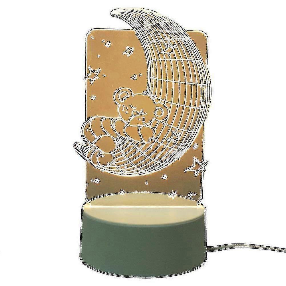 3D Moon Bear Night Light - USB Rechargeable LED Lamp for Kids, Bedroom, Home Decor, Warm Glow Table Light