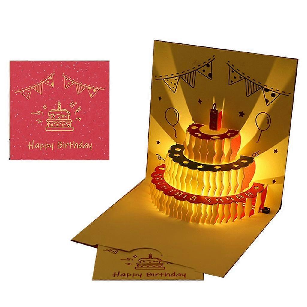3D Pop up Happy Birthday Cake Led Light Foldable Paper Cards for Birthday