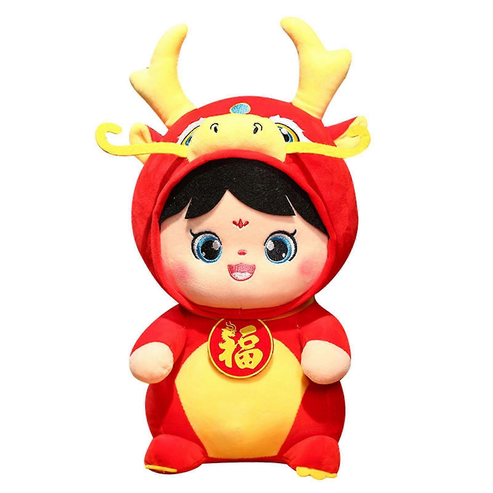 Introducing our new year doll, the perfect addition to your Spring Festival decorations! This soft plush doll is filled with high-quality pp cotton, ensuring it keeps in shape even when beaten, kneaded, or pressed. Its smooth texture is irresistible and will make you want to keep touching it. Featuring a cartoon embroidered Chinese dragon, this doll has three-dimensional facial features that bring it to life. The vivid expression and stylish design make it a standout piece. The three-dimensional dragon horns and exquisite workmanship add to its charm. Our new year doll is not only a decorative item but also a lucky charm for the Year of the Dragon. It makes for the friendliest New Year gift for your loved ones. Place it anywhere you desire to create a festive atmosphere and celebrate the Spring Festival in style. Don't miss out on this unique and adorable doll that captures the essence of the New Year celebrations. Item Name: New Year Doll Material: PP Cotton Shape: Cartoon DragonStyle: CuteFeatures: Stuffed, Soft, Colorful Size Details: S, Height: 25cm/9.84" (Approx.)M, Height: 36cm/14.17" (Approx.)L, Height: 50cm/19.69" (Approx.) Notes: Due to the light and screen setting difference, the item's color may be slightly different from the pictures.Please allow slight dimension difference due to different manual measurement. Package Includes: 1 x New Year Doll