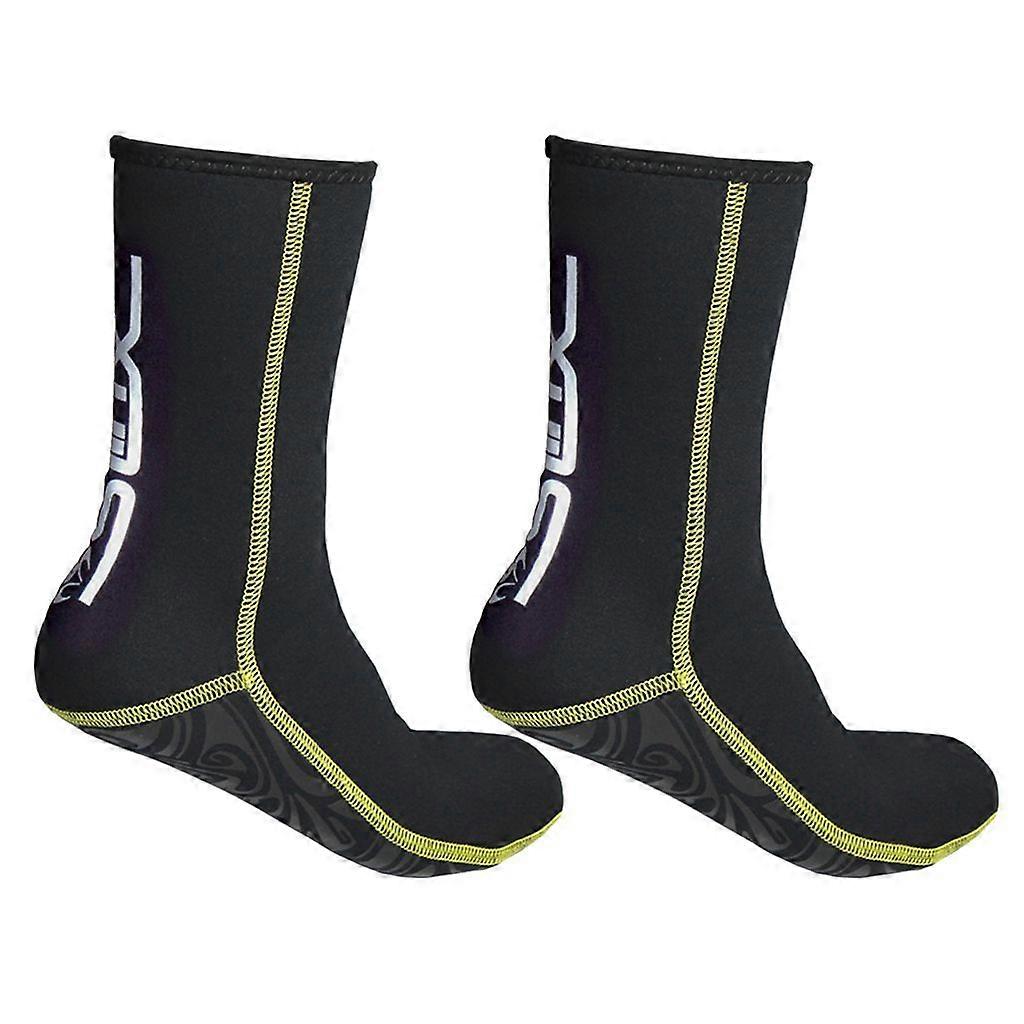 1pair Diving Socks 3mm Neoprene Scuba Diving Socks Men Women Wetsuit Booties Warm Flexible for Kayaking Surfing Diving Water Sports Features: brand new and high quality. COMFORTABLE FITNeoprene socks wetsuit booties made with 3MM premium neoprene to give you a flexible and comfortable fit, you have less restrictions and less foot fatigue during water sports. PERFECT PROTECTIONWith anti-slip design on bottom of the socks and warm thermal materials to protect your foots from hurt by rocks or other for sharp objects and keep warm while underwater, can be worn together with regular water booties for added warmth in very cold water, just enjoy it. WIDE APPLICATIONHi-grip textured construction, wonderful for beach, snorkeling, swimming, scuba, surfing, sailing, kayaking, canoeing, diving, perfect gift idea for mother, father, family, friends, lover...ect DURABLEGlued and blind stitched for superior strength and durability, don'for t worry about ripped, it will be a long term partner for you. FULL COVERAGE150% high stretch and excellent recovery, can be fitted and adjusted all size available for men, women or kids in S, for M, L, XL, please choose the size according to your feet length and reference to our size table for image. Specifications: Color: black Material: Neoprene + Nylon Size: S/for M/L/XL Note: Transition: 1cm=10mm=0.39inch Please allow 0-1cm error due to manual measurement. pls make sure you do not mind before you bid. Due to the difference between different monitors different batches of products, the picture may not reflect the actual color of the item. Thank you! Package Includes: 1pair Diving Socks
