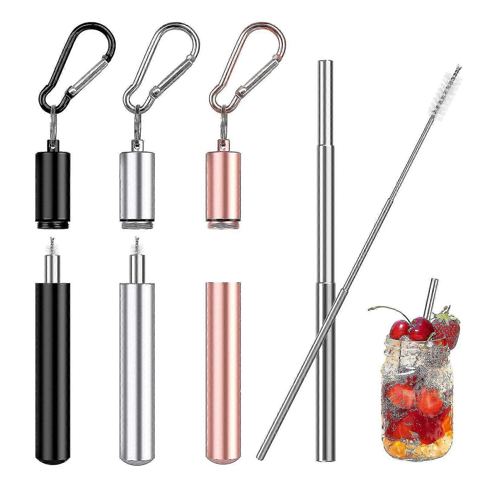 3packs Stainless Steel Straw, Telescopic Reusable Straws 22.5cm Collapsible Eco-friendly Straws With 3 Telescopic