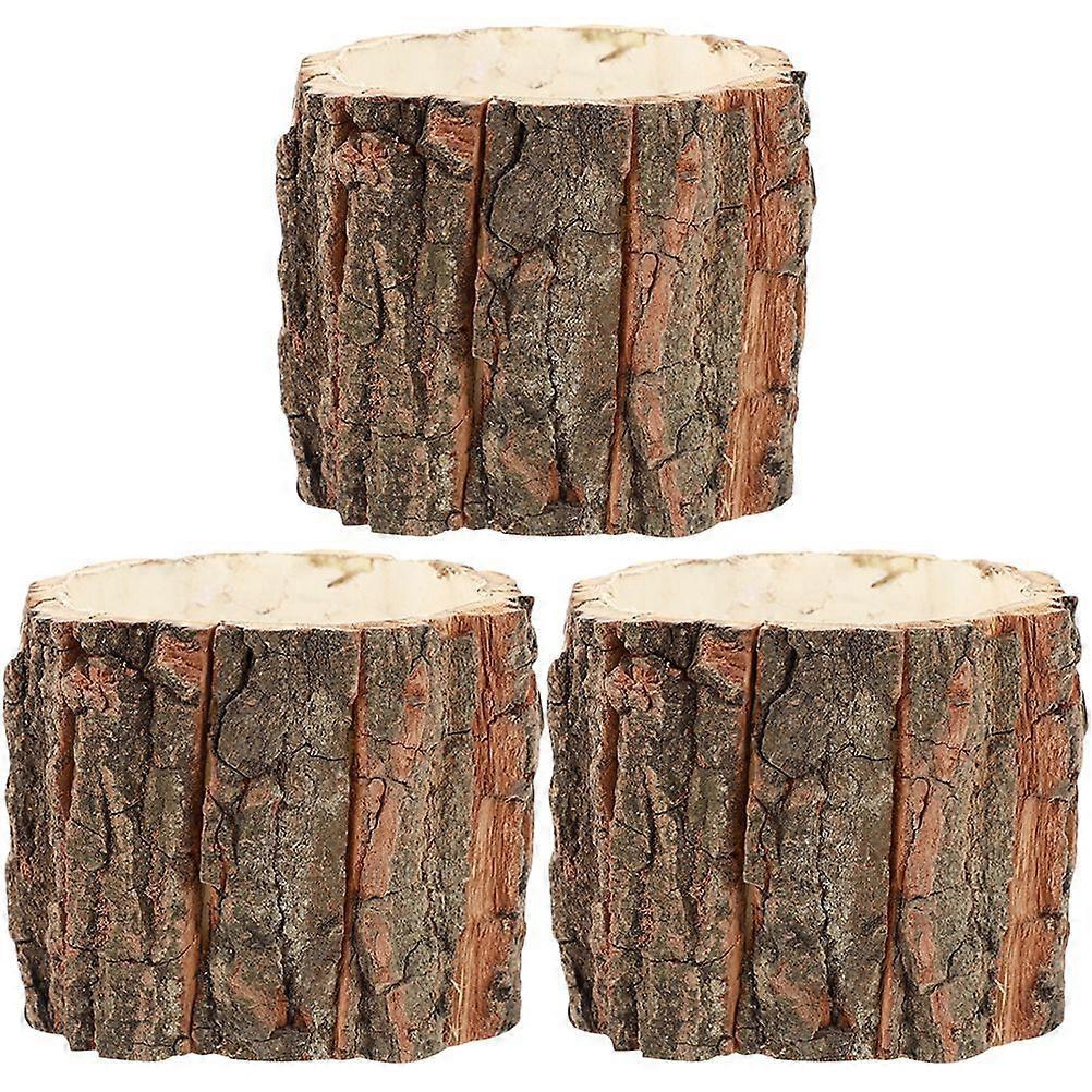 3pcs Wood Bark Flower Pots Farmhouse Flower Buckets Wood Log Plant Containers