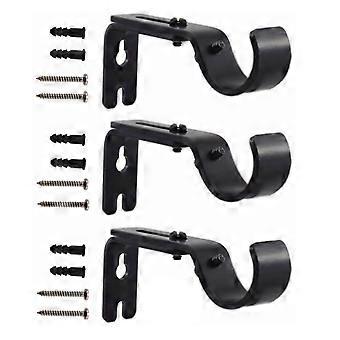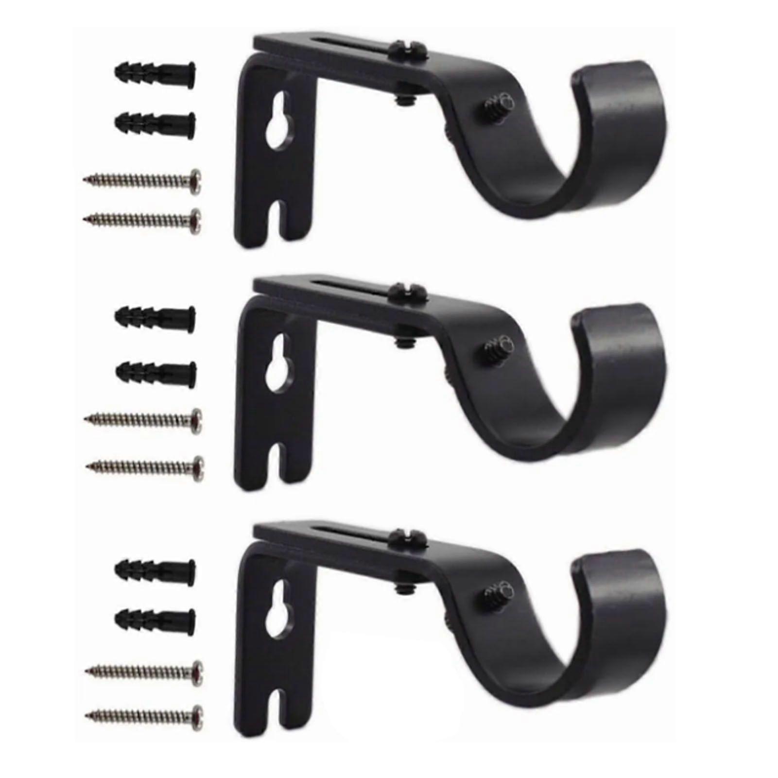 3PCS Adjustable Curtain Rod Wall Bracket Hooks Iron Single Rod Bracket Holder for Wall Mounted Curtain Black