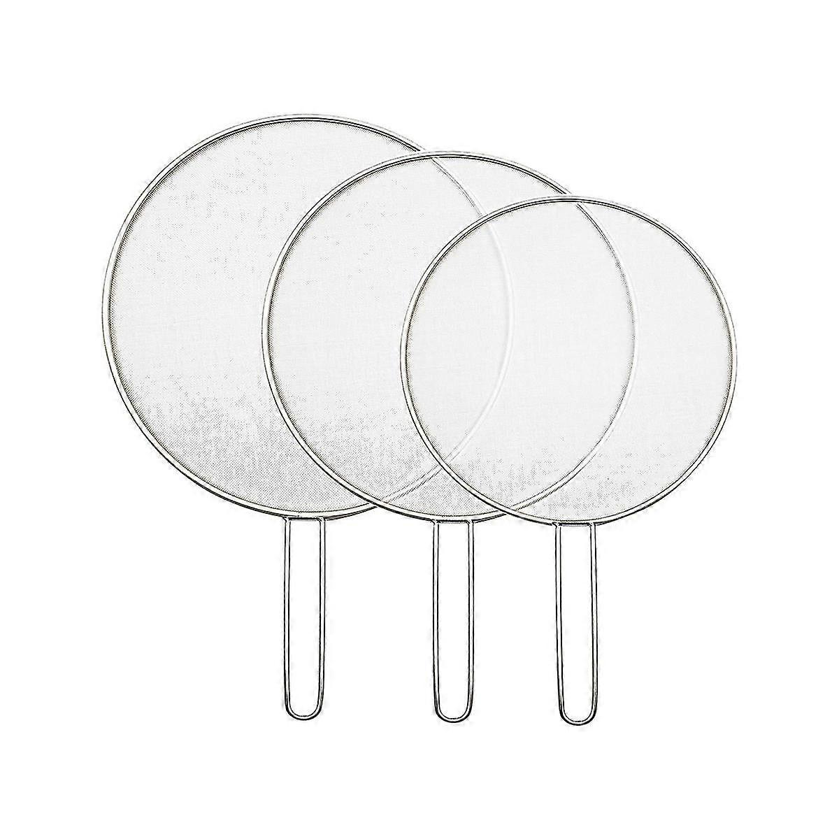 3pcs Stainless Steel Splatter Screen Mesh Pot Lid Cover Silver Oil Frying Pan Lid Cooking Tools 25/